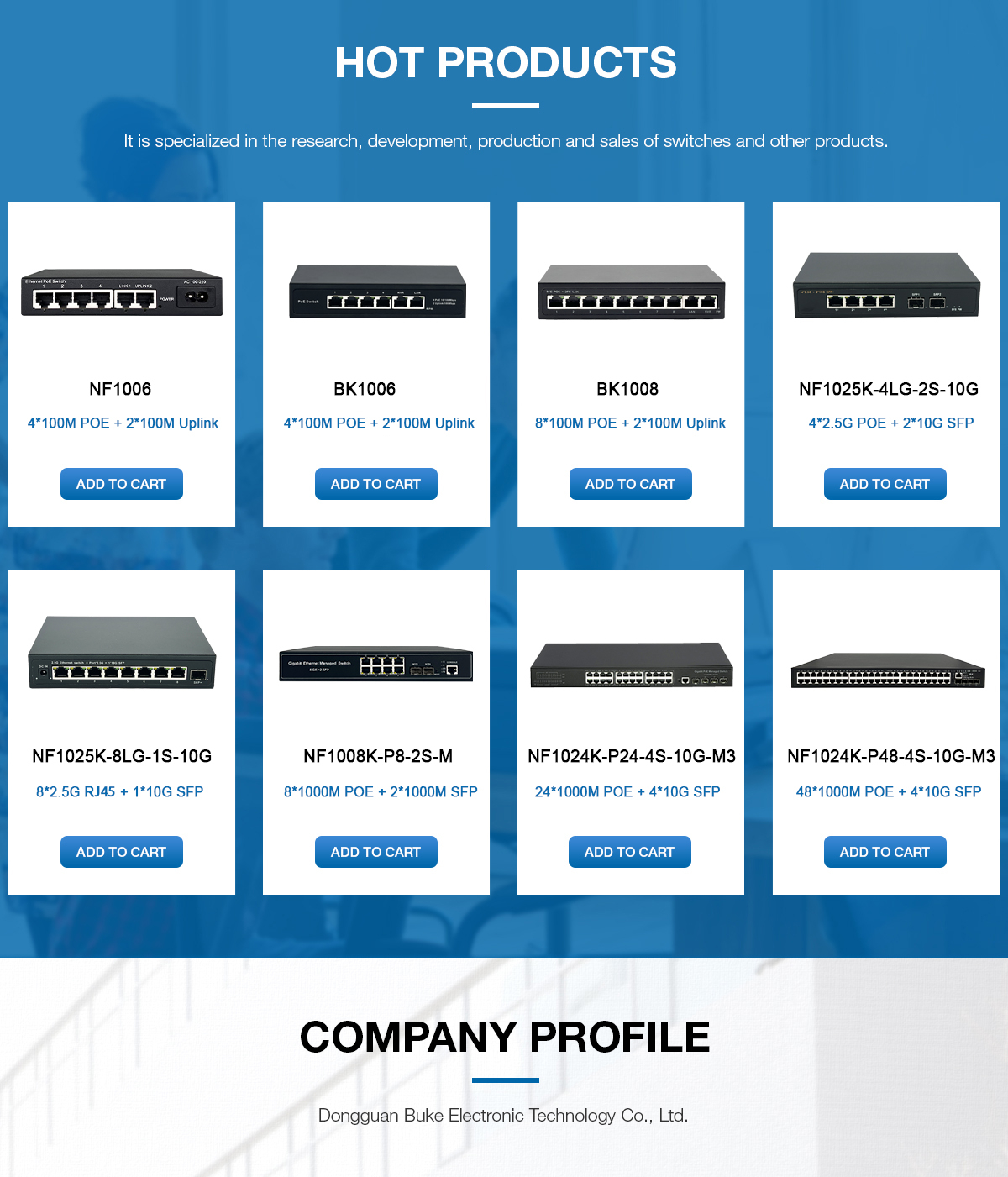 Productos principales:Interruptor POE, medios Gigabit de fibra óptica, interruptor de control de acceso, módulo de red