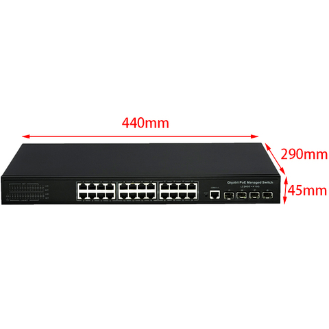 Vente chaude 24 Ports Managed Poe Switch 4*10/100/1000 Mbps Uplink 4*1000 Mbps SFP Port Optique pour Système de Caméra SNMP QoS